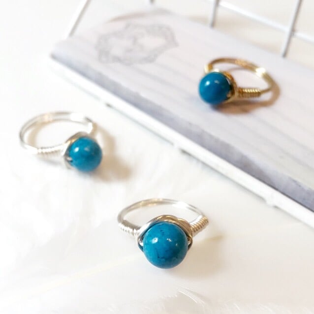 独特の模様とブルーの濃淡が美しい丸ターコイズだけを厳選し、シンプルで使いやすいワイヤーリングに仕上げました(^^)